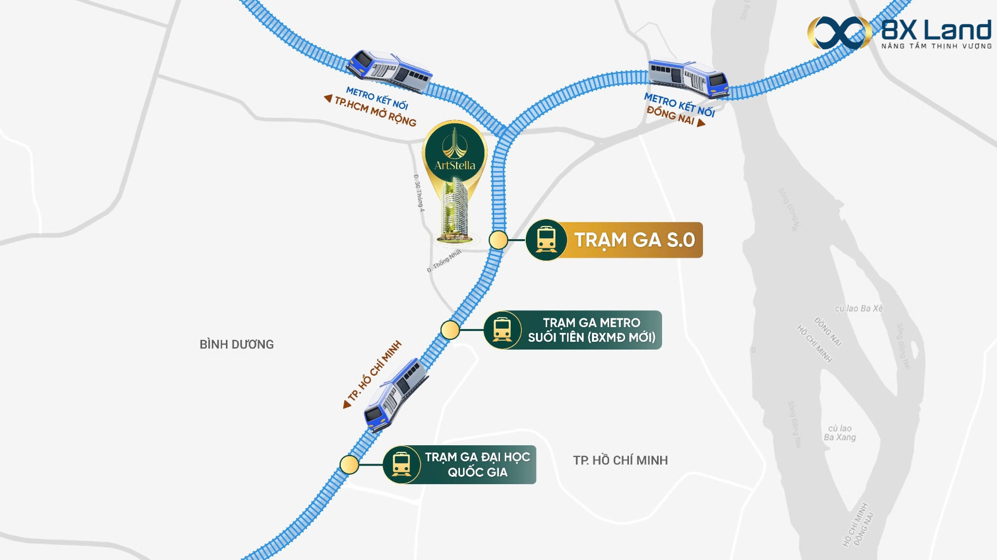 - Trái tim tam giác kinh tế: Art Stella nằm giữa TP.HCM, Đồng Nai và các tỉnh miền Tây, gần Bến xe Miền Đông mới, thu hút lượng khách lớn mỗi ngày.