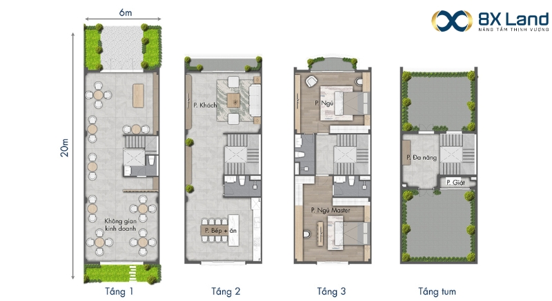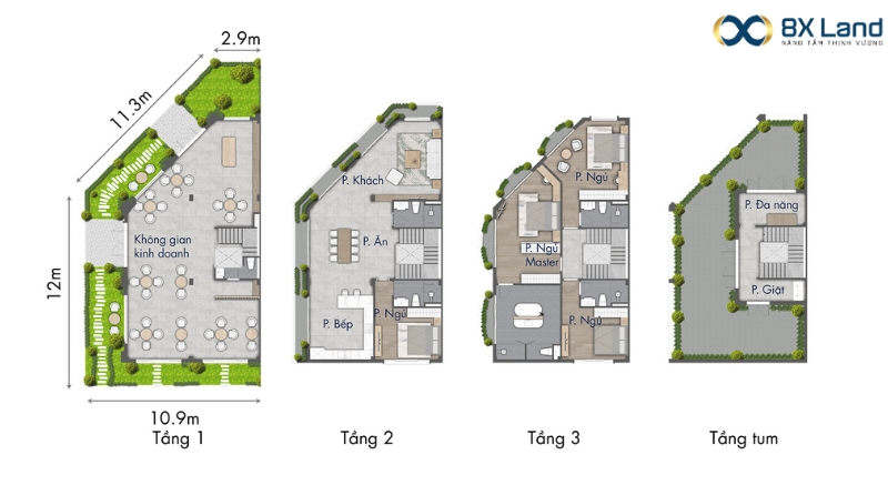 - Tầng tum: Phòng đa năng và phòng giặt.