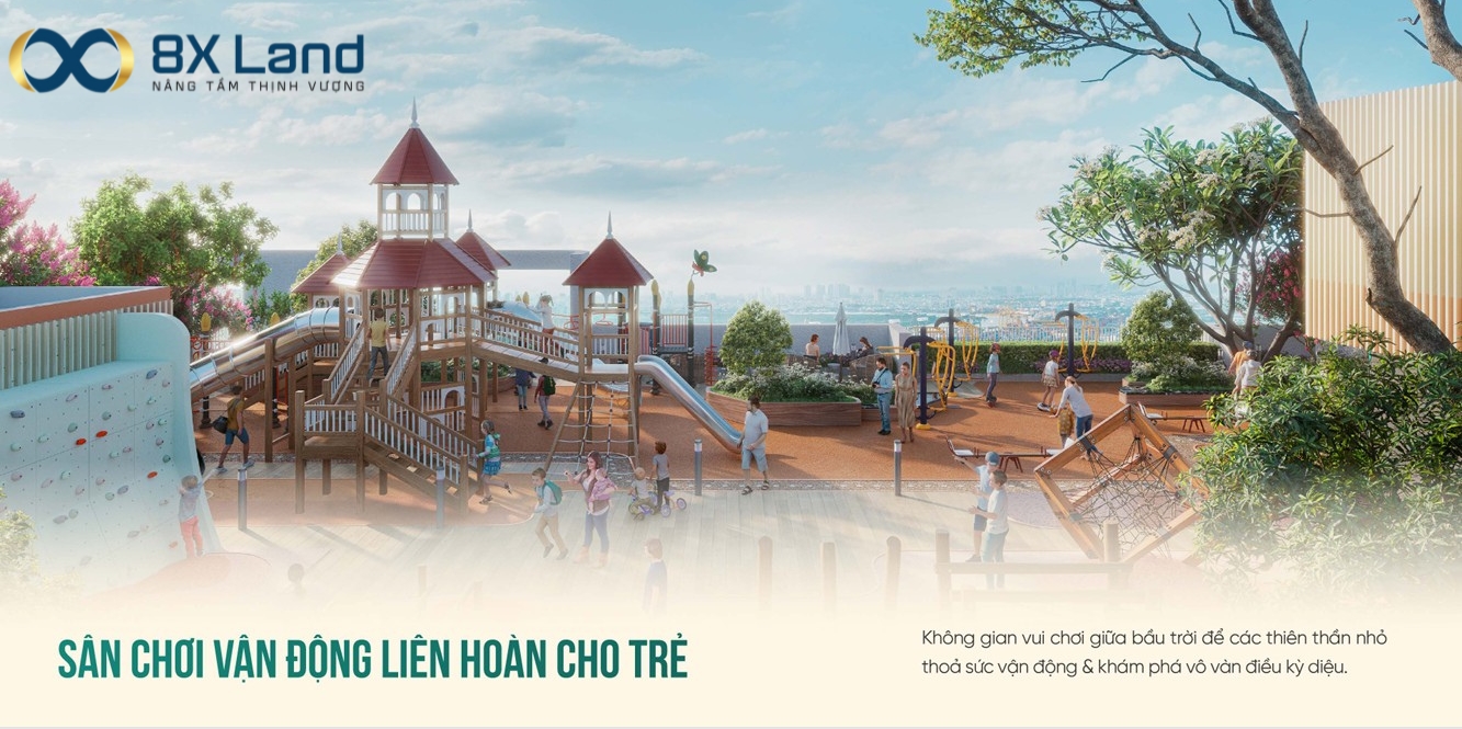 Dự án còn chú trọng đến các hoạt động thể thao và giải trí với các khu vực như khu Yoga, khu thể thao cư dân, phòng gym nam/nữ, và khu vui chơi sáng tạo cho trẻ em. Đây là những tiện ích giúp cư dân tận hưởng cuộc sống khỏe mạnh, năng động và hạnh phúc ngay trong chính ngôi nhà của mình.